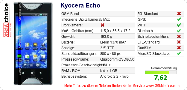 Daten des Mobiltelefons Kyocera Echo auf Ihrer Seite