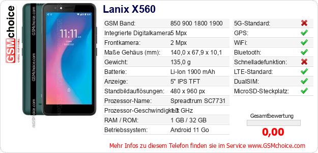 Daten des Mobiltelefons Lanix X560 auf Ihrer Seite
