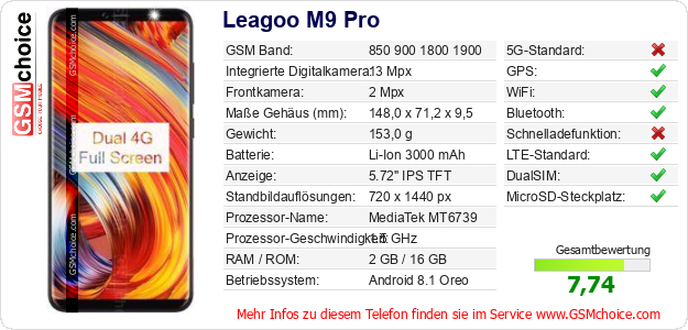 Daten des Mobiltelefons Leagoo M9 Pro auf Ihrer Seite