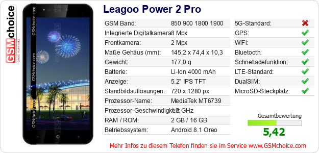 Daten des Mobiltelefons Leagoo Power 2 Pro auf Ihrer Seite