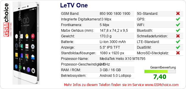 Hast du eigene Webseite? Willst du die Informationen über Standarddaten des Handys LeTV One irgendwo veröffentlichen? Das ist sehr einfach. Du kannst das Bild herunterladen oder kopieren und auf der Webseite folgenden Code hinzufügen:Das Einfügen von diesem Code verursacht das Anzeigen von dem folgenden Bild: