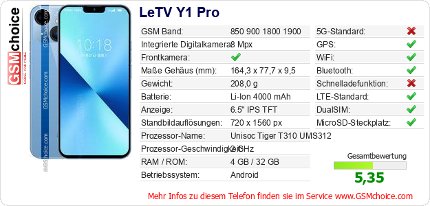 Hast du eigene Webseite? Willst du die Informationen über Standarddaten des Handys LeTV Y1 Pro irgendwo veröffentlichen? Das ist sehr einfach. Du kannst das Bild herunterladen oder kopieren und auf der Webseite folgenden Code hinzufügen:Das Einfügen von diesem Code verursacht das Anzeigen von dem folgenden Bild: