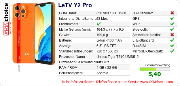 Hast du eigene Webseite? Willst du die Informationen über Standarddaten des Handys LeTV Y2 Pro irgendwo veröffentlichen? Das ist sehr einfach. Du kannst das Bild herunterladen oder kopieren und auf der Webseite folgenden Code hinzufügen:Das Einfügen von diesem Code verursacht das Anzeigen von dem folgenden Bild: