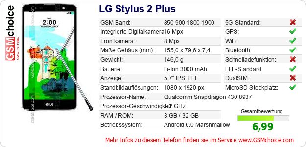 Hast du eigene Webseite? Willst du die Informationen über Standarddaten des Handys LG Stylus 2 Plus irgendwo veröffentlichen? Das ist sehr einfach. Du kannst das Bild herunterladen oder kopieren und auf der Webseite folgenden Code hinzufügen:Das Einfügen von diesem Code verursacht das Anzeigen von dem folgenden Bild: