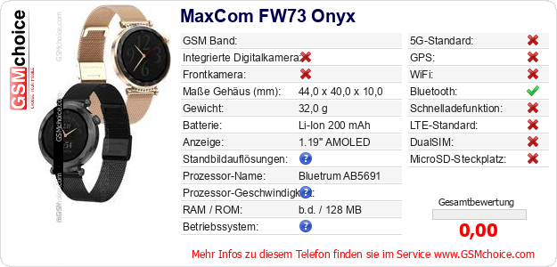 Hast du eigene Webseite? Willst du die Informationen über Standarddaten des Handys MaxCom FW73 Onyx irgendwo veröffentlichen? Das ist sehr einfach. Du kannst das Bild herunterladen oder kopieren und auf der Webseite folgenden Code hinzufügen:Das Einfügen von diesem Code verursacht das Anzeigen von dem folgenden Bild: