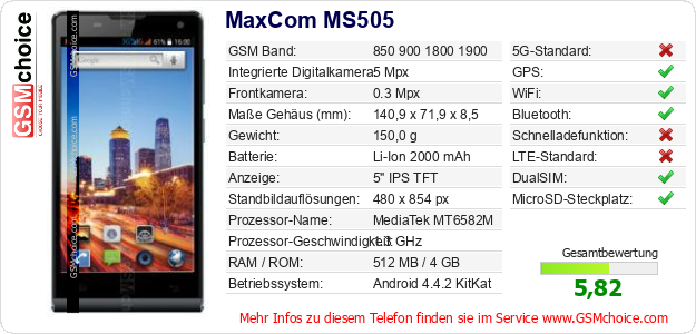 Hast du eigene Webseite? Willst du die Informationen über Standarddaten des Handys MaxCom MS505 irgendwo veröffentlichen? Das ist sehr einfach. Du kannst das Bild herunterladen oder kopieren und auf der Webseite folgenden Code hinzufügen:Das Einfügen von diesem Code verursacht das Anzeigen von dem folgenden Bild: