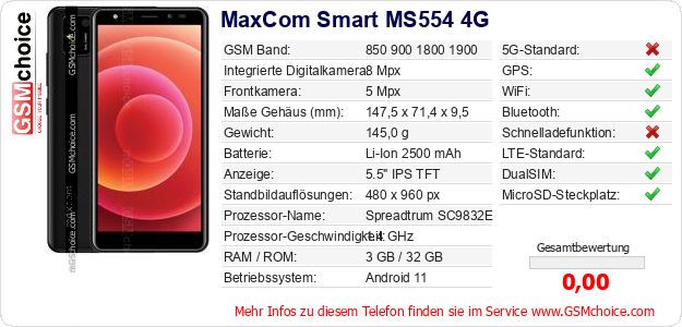 Daten des Mobiltelefons MaxCom Smart MS554 4G auf Ihrer Seite