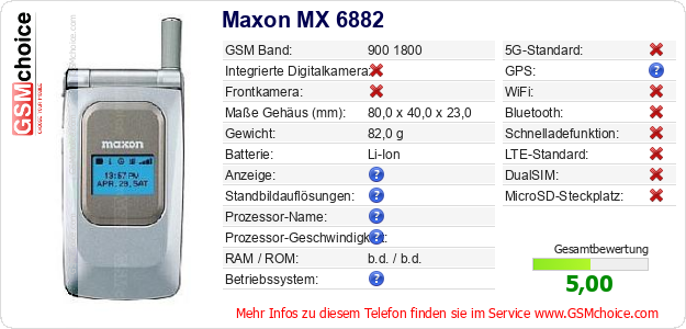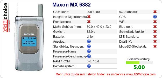 Daten des Mobiltelefons Maxon MX 6882 auf Ihrer Seite