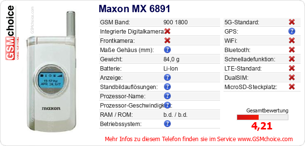 Daten des Mobiltelefons Maxon MX 6891 auf Ihrer Seite
