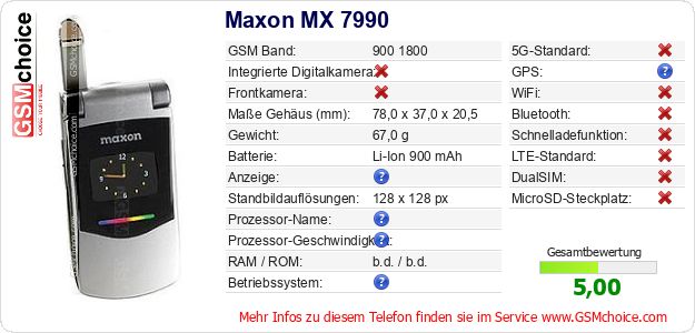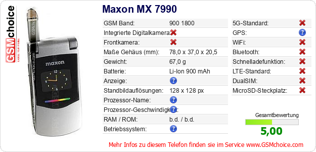 Daten des Mobiltelefons Maxon MX 7990 auf Ihrer Seite