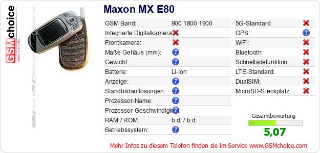 Daten des Mobiltelefons Maxon MX E80 auf Ihrer Seite