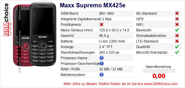 Daten des Mobiltelefons Maxx Supremo MX425e auf Ihrer Seite
