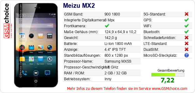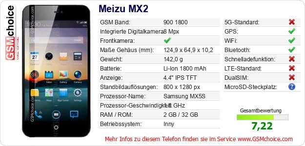 Hast du eigene Webseite? Willst du die Informationen über Standarddaten des Handys Meizu MX2 irgendwo veröffentlichen? Das ist sehr einfach. Du kannst das Bild herunterladen oder kopieren und auf der Webseite folgenden Code hinzufügen:Das Einfügen von diesem Code verursacht das Anzeigen von dem folgenden Bild: