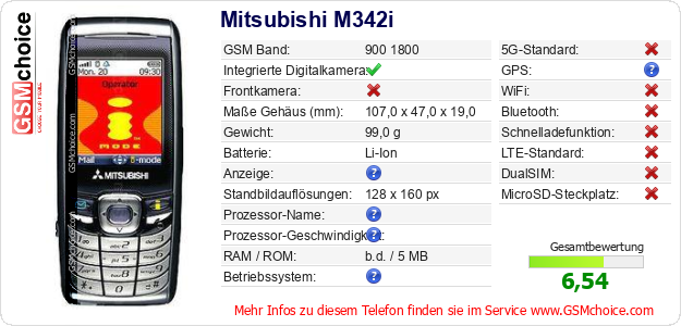 Hast du eigene Webseite? Willst du die Informationen über Standarddaten des Handys Mitsubishi M342i irgendwo veröffentlichen? Das ist sehr einfach. Du kannst das Bild herunterladen oder kopieren und auf der Webseite folgenden Code hinzufügen:Das Einfügen von diesem Code verursacht das Anzeigen von dem folgenden Bild:
