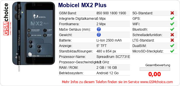 Daten des Mobiltelefons Mobicel MX2 Plus auf Ihrer Seite