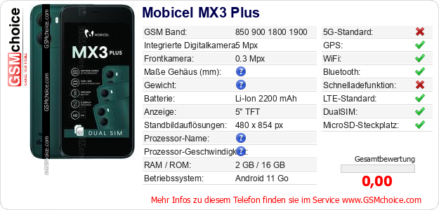 Daten des Mobiltelefons Mobicel MX3 Plus auf Ihrer Seite