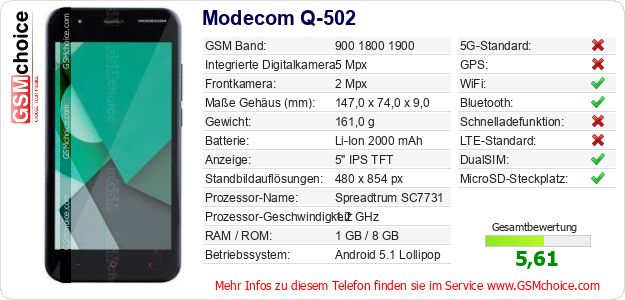 Hast du eigene Webseite? Willst du die Informationen über Standarddaten des Handys Modecom Q-502 irgendwo veröffentlichen? Das ist sehr einfach. Du kannst das Bild herunterladen oder kopieren und auf der Webseite folgenden Code hinzufügen:Das Einfügen von diesem Code verursacht das Anzeigen von dem folgenden Bild: