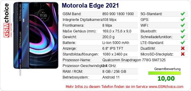 Hast du eigene Webseite? Willst du die Informationen über Standarddaten des Handys Motorola Edge 2021 irgendwo veröffentlichen? Das ist sehr einfach. Du kannst das Bild herunterladen oder kopieren und auf der Webseite folgenden Code hinzufügen:Das Einfügen von diesem Code verursacht das Anzeigen von dem folgenden Bild: