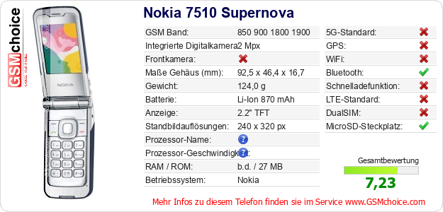 Daten des Mobiltelefons Nokia 7510 Supernova auf Ihrer Seite