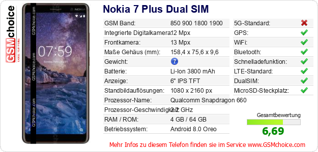 Daten des Mobiltelefons Nokia 7 Plus Dual SIM auf Ihrer Seite