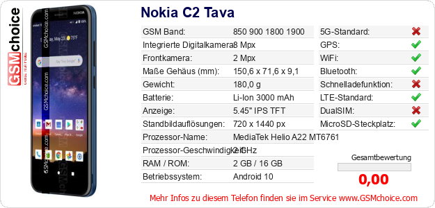 Hast du eigene Webseite? Willst du die Informationen über Standarddaten des Handys Nokia C2 Tava irgendwo veröffentlichen? Das ist sehr einfach. Du kannst das Bild herunterladen oder kopieren und auf der Webseite folgenden Code hinzufügen:Das Einfügen von diesem Code verursacht das Anzeigen von dem folgenden Bild: