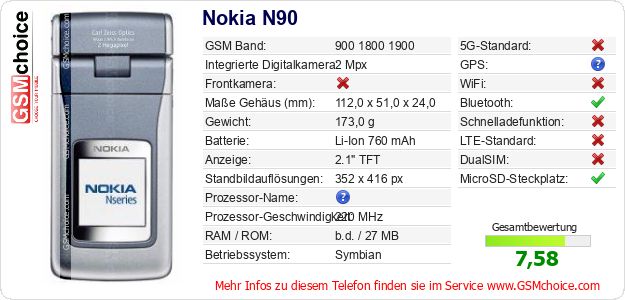 Daten des Mobiltelefons Nokia N90 auf Ihrer Seite