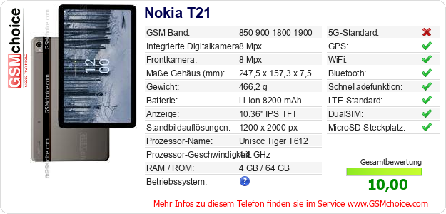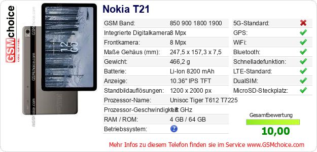 Hast du eigene Webseite? Willst du die Informationen über Standarddaten des Handys Nokia T21 irgendwo veröffentlichen? Das ist sehr einfach. Du kannst das Bild herunterladen oder kopieren und auf der Webseite folgenden Code hinzufügen:Das Einfügen von diesem Code verursacht das Anzeigen von dem folgenden Bild: