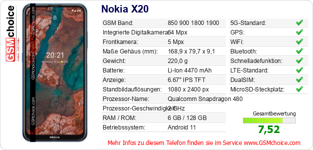 Hast du eigene Webseite? Willst du die Informationen über Standarddaten des Handys Nokia X20 irgendwo veröffentlichen? Das ist sehr einfach. Du kannst das Bild herunterladen oder kopieren und auf der Webseite folgenden Code hinzufügen:Das Einfügen von diesem Code verursacht das Anzeigen von dem folgenden Bild: