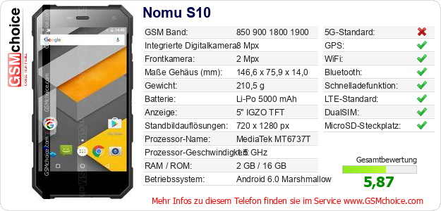 Hast du eigene Webseite? Willst du die Informationen über Standarddaten des Handys Nomu S10 irgendwo veröffentlichen? Das ist sehr einfach. Du kannst das Bild herunterladen oder kopieren und auf der Webseite folgenden Code hinzufügen:Das Einfügen von diesem Code verursacht das Anzeigen von dem folgenden Bild: