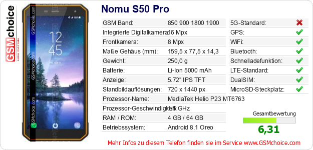 Hast du eigene Webseite? Willst du die Informationen über Standarddaten des Handys Nomu S50 Pro irgendwo veröffentlichen? Das ist sehr einfach. Du kannst das Bild herunterladen oder kopieren und auf der Webseite folgenden Code hinzufügen:Das Einfügen von diesem Code verursacht das Anzeigen von dem folgenden Bild: