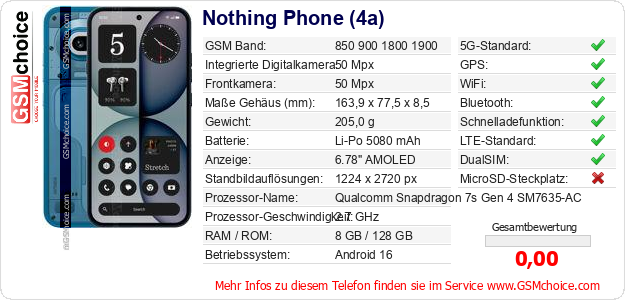 Daten des Mobiltelefons Nothing Phone (4a) auf Ihrer Seite