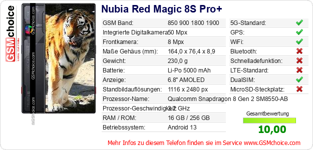 Daten des Mobiltelefons Nubia Red Magic 8S Pro+ auf Ihrer Seite