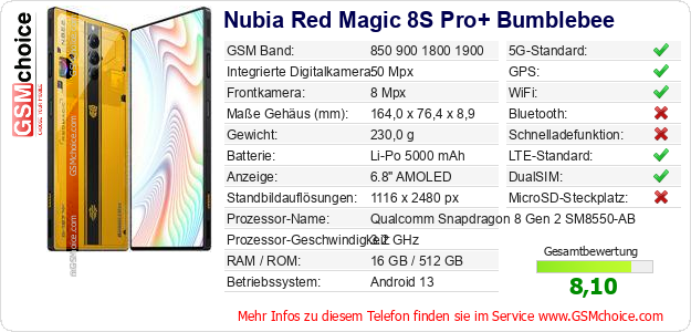 Daten des Mobiltelefons Nubia Red Magic 8S Pro+ Bumblebee auf Ihrer Seite