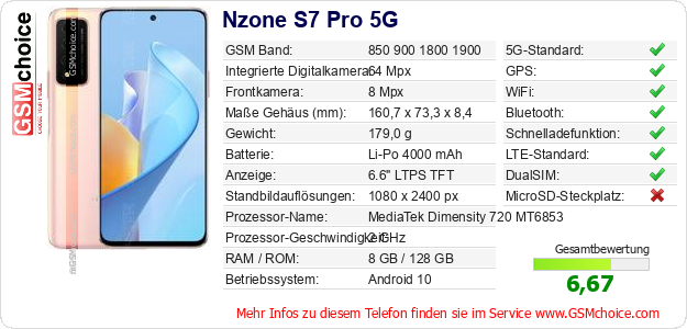 Daten des Mobiltelefons Nzone S7 Pro 5G auf Ihrer Seite