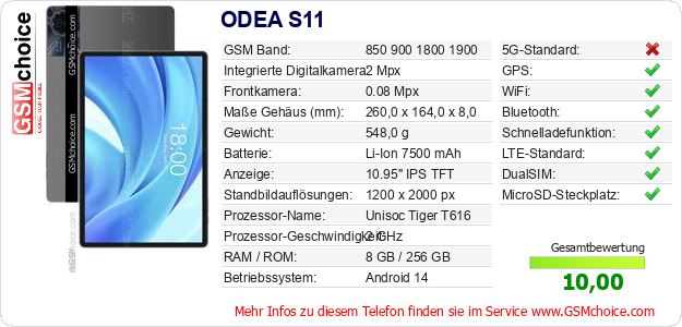 Hast du eigene Webseite? Willst du die Informationen über Standarddaten des Handys ODEA S11 irgendwo veröffentlichen? Das ist sehr einfach. Du kannst das Bild herunterladen oder kopieren und auf der Webseite folgenden Code hinzufügen:Das Einfügen von diesem Code verursacht das Anzeigen von dem folgenden Bild: