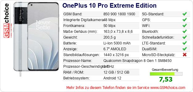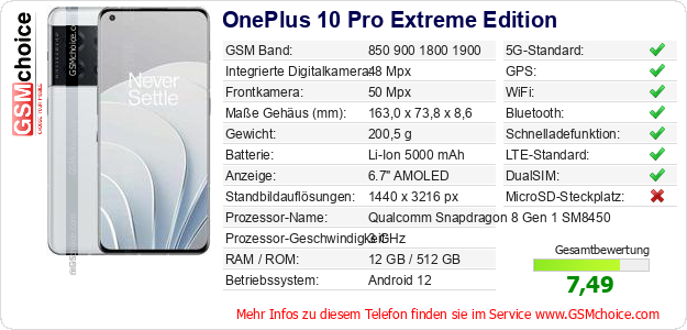 Daten des Mobiltelefons OnePlus 10 Pro Extreme Edition auf Ihrer Seite