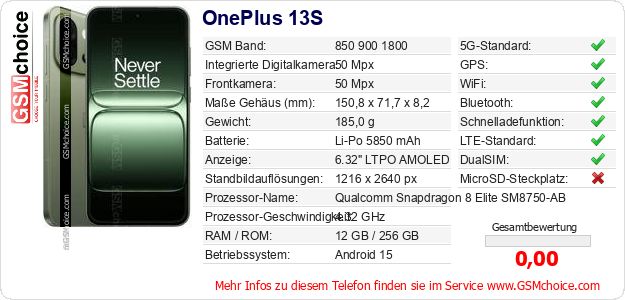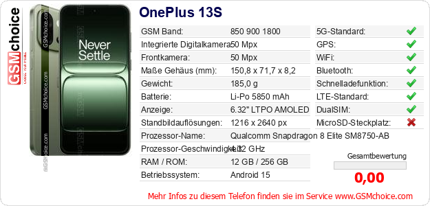 Daten des Mobiltelefons OnePlus 13S auf Ihrer Seite