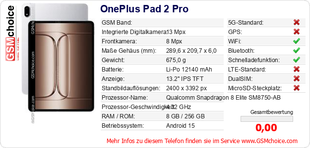 Hast du eigene Webseite? Willst du die Informationen über Standarddaten des Handys OnePlus Pad 2 Pro irgendwo veröffentlichen? Das ist sehr einfach. Du kannst das Bild herunterladen oder kopieren und auf der Webseite folgenden Code hinzufügen:Das Einfügen von diesem Code verursacht das Anzeigen von dem folgenden Bild: