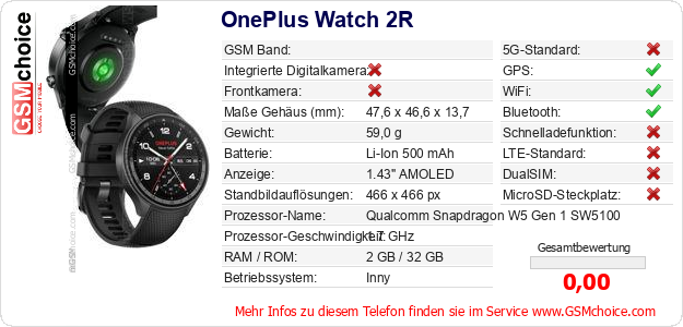 Daten des Mobiltelefons OnePlus Watch 2R auf Ihrer Seite