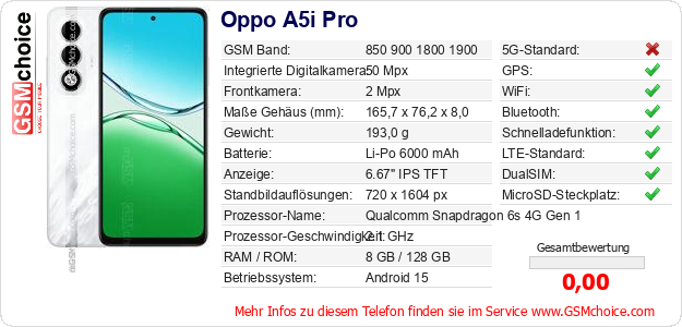 Daten des Mobiltelefons Oppo A5i Pro auf Ihrer Seite