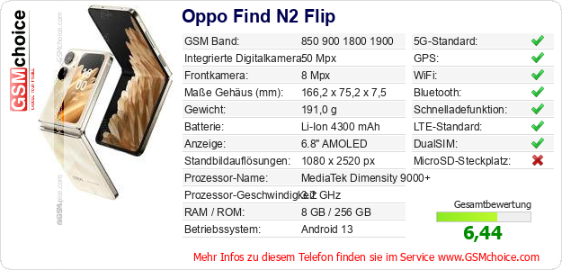 Daten des Mobiltelefons Oppo Find N2 Flip auf Ihrer Seite