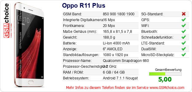 Daten des Mobiltelefons Oppo R11 Plus auf Ihrer Seite