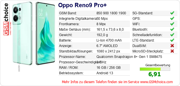 Hast du eigene Webseite? Willst du die Informationen über Standarddaten des Handys Oppo Reno9 Pro+ irgendwo veröffentlichen? Das ist sehr einfach. Du kannst das Bild herunterladen oder kopieren und auf der Webseite folgenden Code hinzufügen:Das Einfügen von diesem Code verursacht das Anzeigen von dem folgenden Bild: