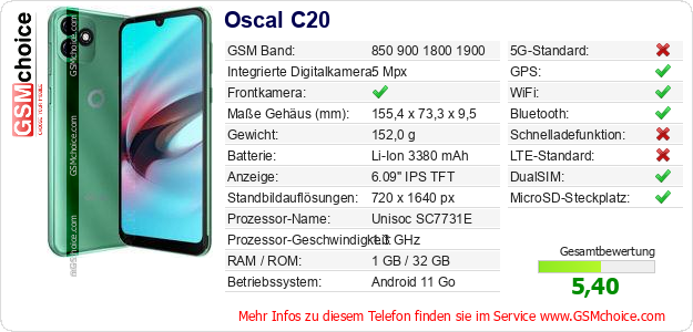 Hast du eigene Webseite? Willst du die Informationen über Standarddaten des Handys Oscal C20 irgendwo veröffentlichen? Das ist sehr einfach. Du kannst das Bild herunterladen oder kopieren und auf der Webseite folgenden Code hinzufügen:Das Einfügen von diesem Code verursacht das Anzeigen von dem folgenden Bild:
