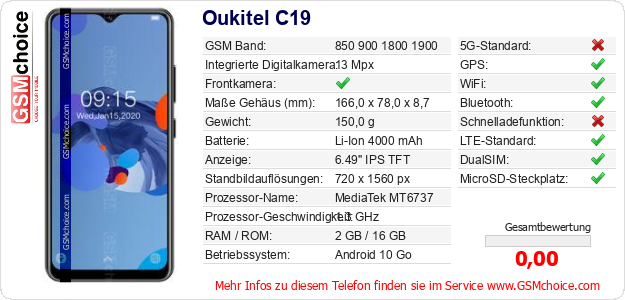 Daten des Mobiltelefons Oukitel C19 auf Ihrer Seite