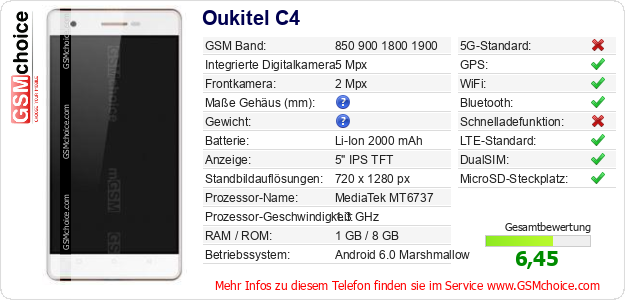 Hast du eigene Webseite? Willst du die Informationen über Standarddaten des Handys Oukitel C4 irgendwo veröffentlichen? Das ist sehr einfach. Du kannst das Bild herunterladen oder kopieren und auf der Webseite folgenden Code hinzufügen:Das Einfügen von diesem Code verursacht das Anzeigen von dem folgenden Bild: