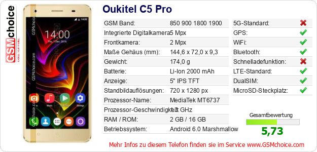 Daten des Mobiltelefons Oukitel C5 Pro auf Ihrer Seite
