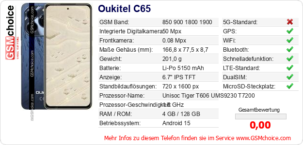 Daten des Mobiltelefons Oukitel C65 auf Ihrer Seite