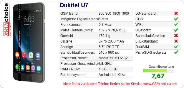 Hast du eigene Webseite? Willst du die Informationen über Standarddaten des Handys Oukitel U7 irgendwo veröffentlichen? Das ist sehr einfach. Du kannst das Bild herunterladen oder kopieren und auf der Webseite folgenden Code hinzufügen:Das Einfügen von diesem Code verursacht das Anzeigen von dem folgenden Bild: