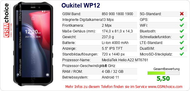Hast du eigene Webseite? Willst du die Informationen über Standarddaten des Handys Oukitel WP12 irgendwo veröffentlichen? Das ist sehr einfach. Du kannst das Bild herunterladen oder kopieren und auf der Webseite folgenden Code hinzufügen:Das Einfügen von diesem Code verursacht das Anzeigen von dem folgenden Bild: